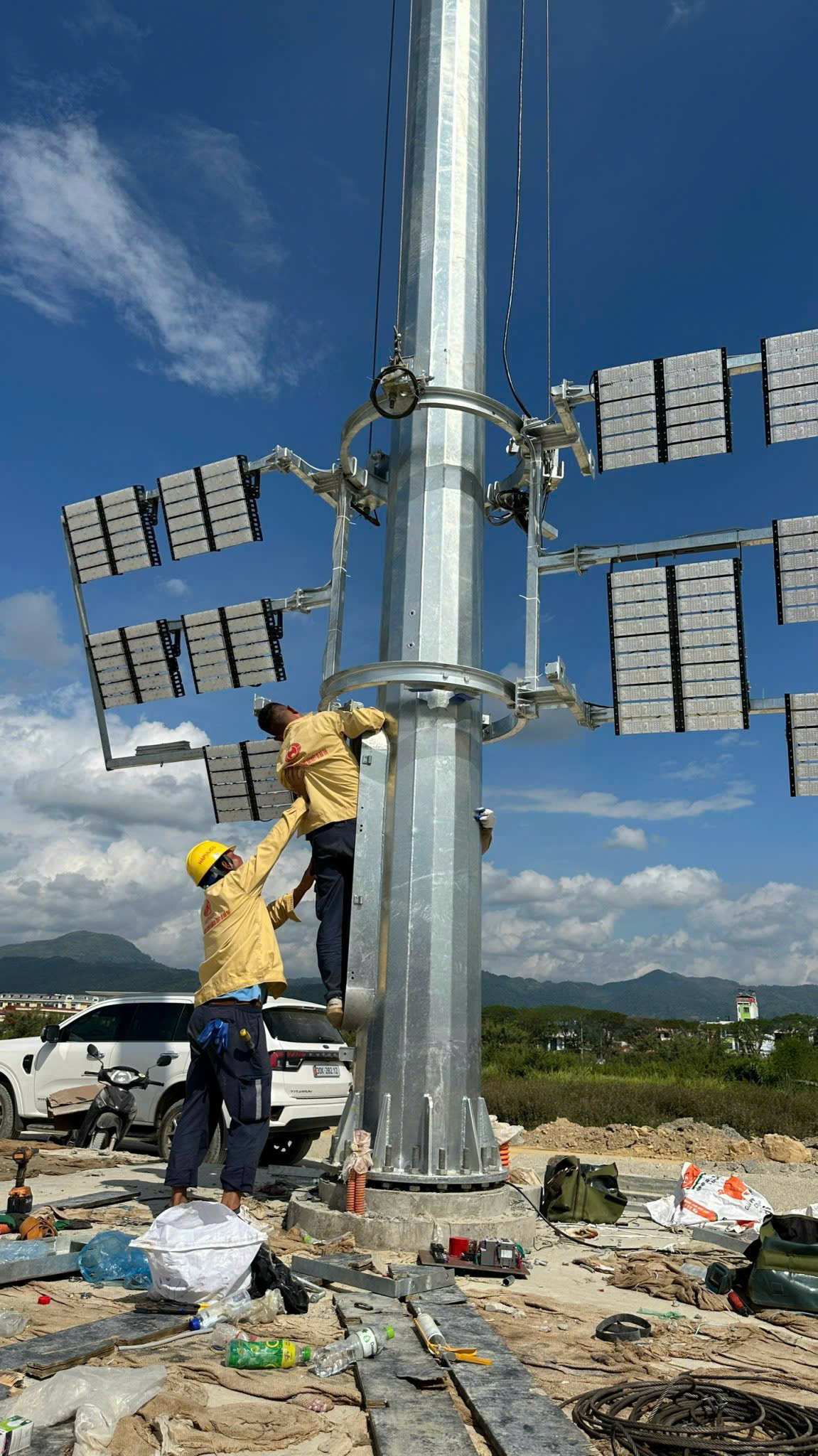 ► Cung cấp và lắp đặt hệ thống cột đèn nâng hạ phục vụ chiếu sáng khu bay – Cảng Hàng không Điện Biên
