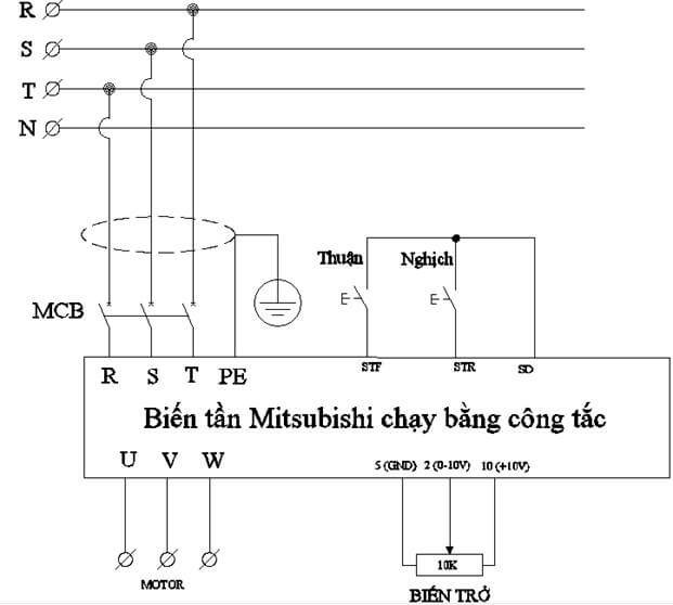 Sơ đồ đấu dây biến tần Mitsubishi D700 bằng công tắc