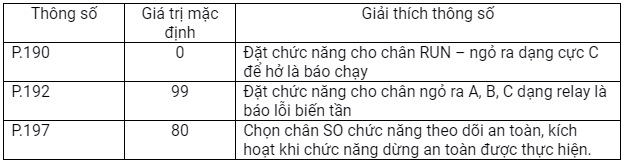 Pr.180 =25 chọn chức năng chân RL là Stop biến tần.