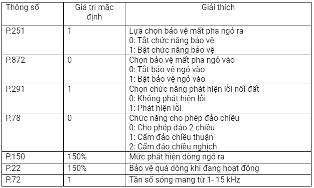 * Nhóm chức năng bảo vệ biến tần Mitsubishi D700