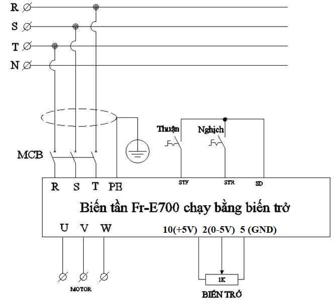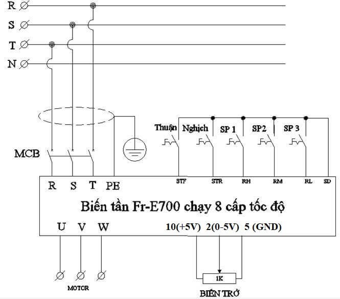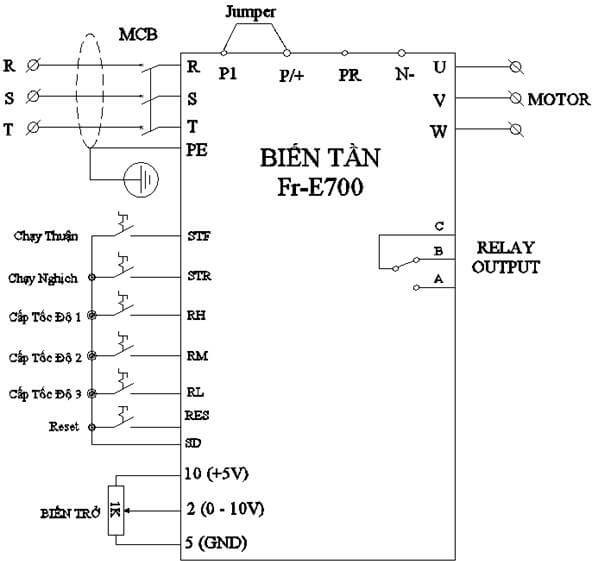 - Cách cài đặt biến tần Mitsubishi E700: Sơ đồ đấu dây