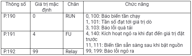 + P.79 = 2 Cài chức năng điều khiển chạy dừng và tần số bằng công tắc biến trở ngoài. Khi muốn điều khiển tần số bằng biến trở cần đảm bảo các chân chạy cấp tốc độ ở trạng thái thường hở (RH, RM, RL).