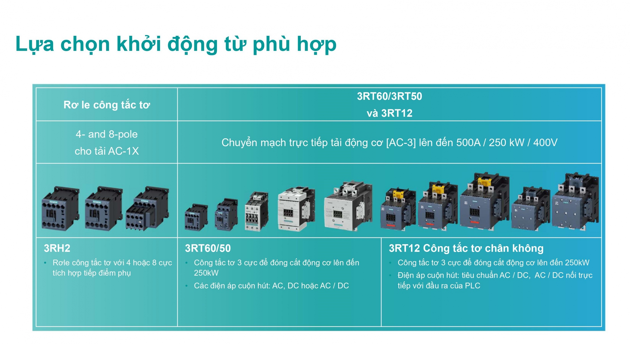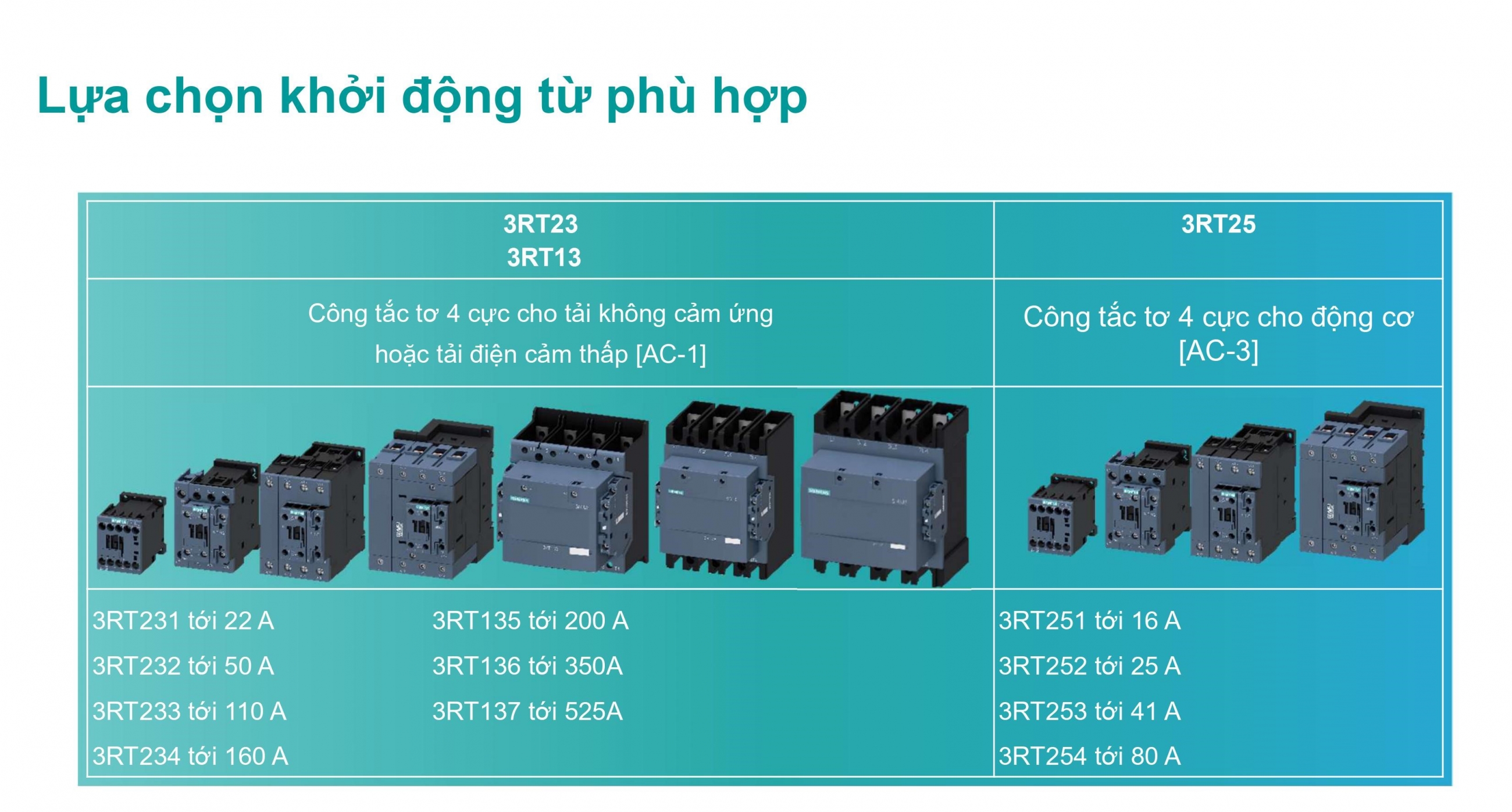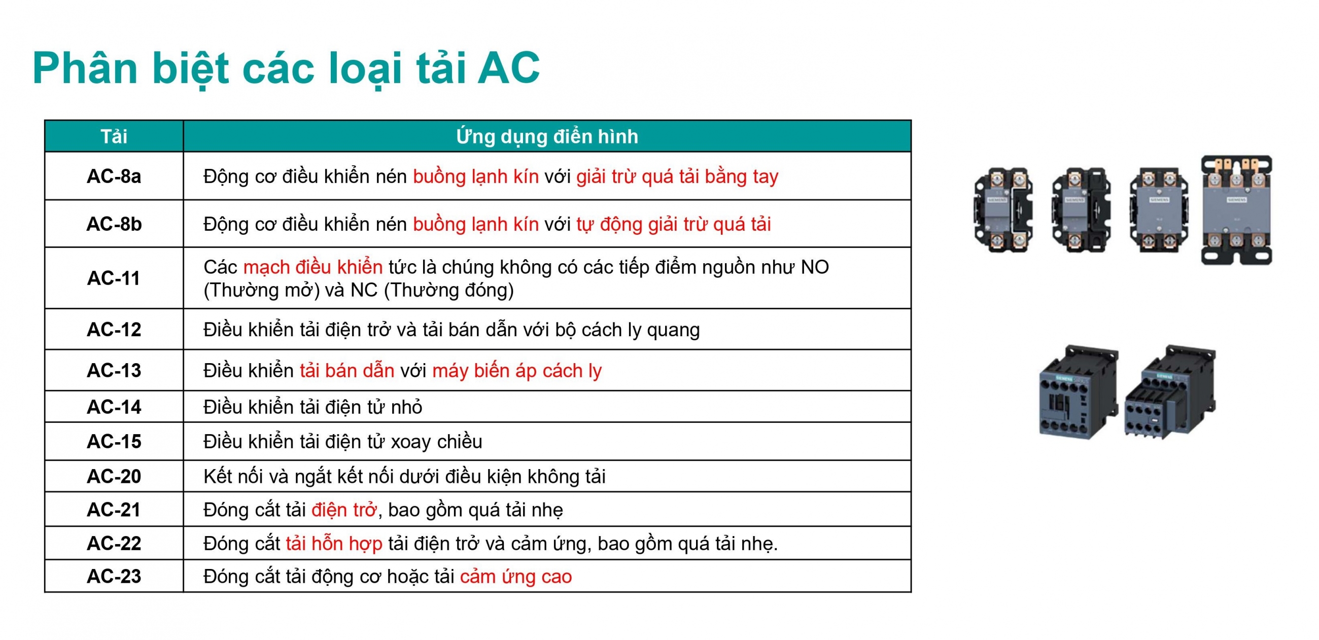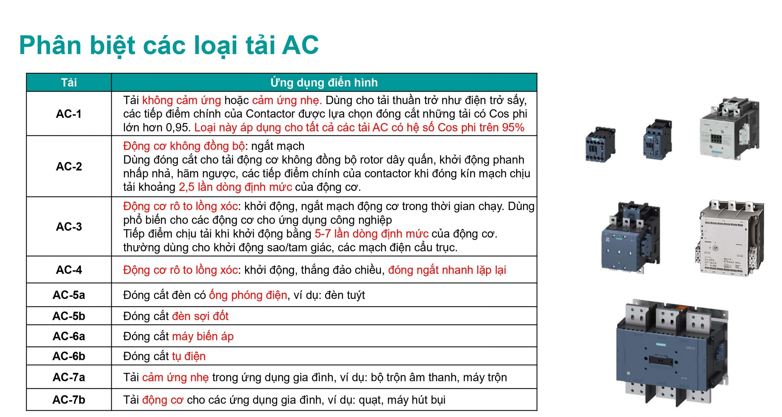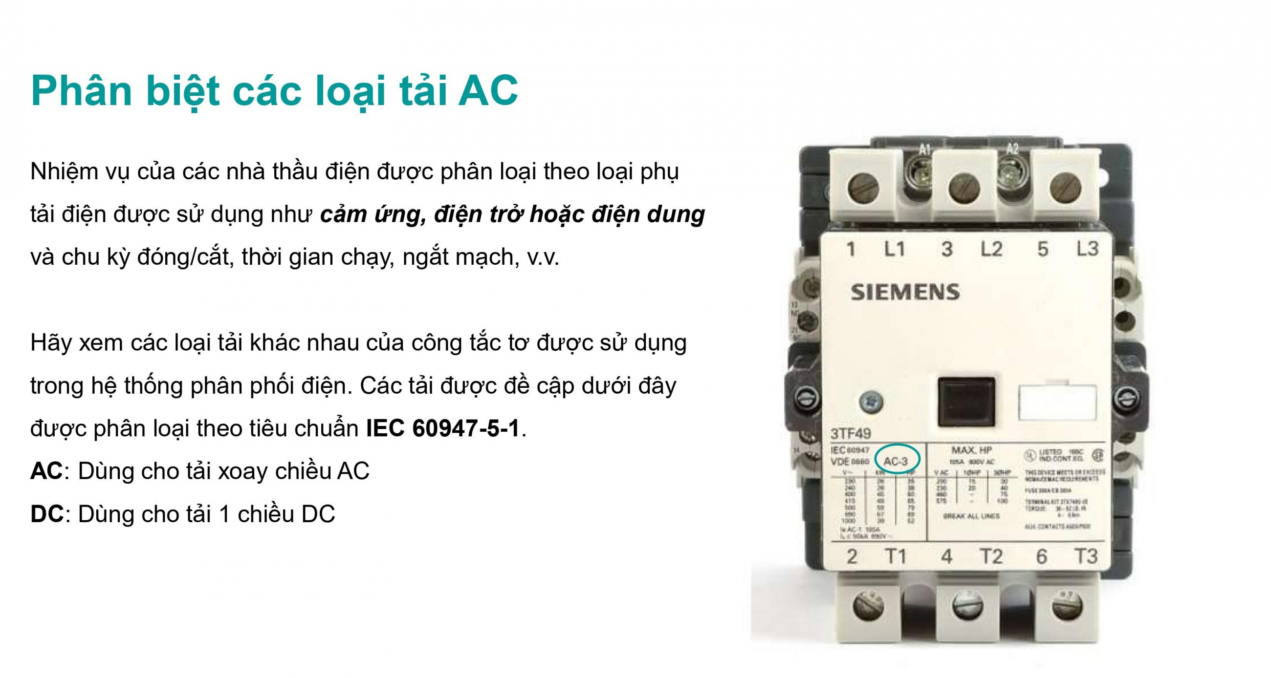 PHÂN BIỆT CÁC LOẠI TẢI AC VÀ CÁCH LỰA CHỌN KHỞI ĐỘNG TỪ SIEMENS