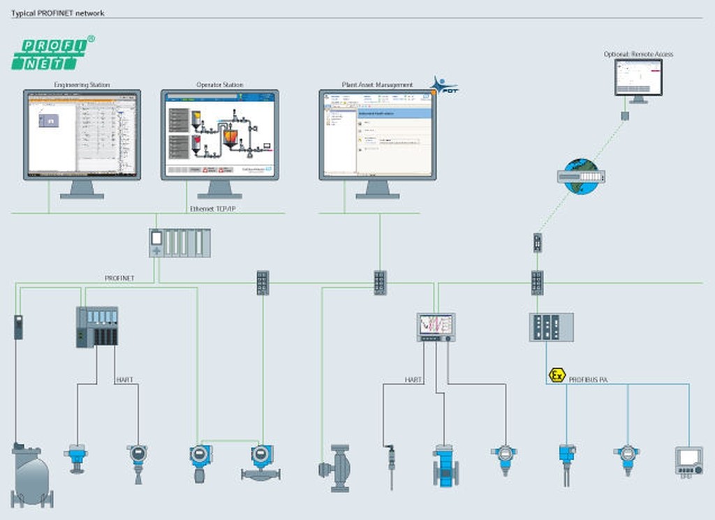 - Mong muốn có một tiêu chuẩn truyền thông trên một mạng cho các ngành công nghiệp, có khả năng chuẩn đoán rộng và các chức năng dịch vụ rộng khắp mạng lưới đã dẫn tới sự gia tăng của việc sử dụng Ethernet công nghiệp. Tổ chức PROFIBUS/PROFINET quốc tế (PI) cung cấp một chuẩn truyền thông toàn diện thông qua Ethernet công nghiệp để đáp ứng mọi yêu cầu: câu trả lời là PROFINET.